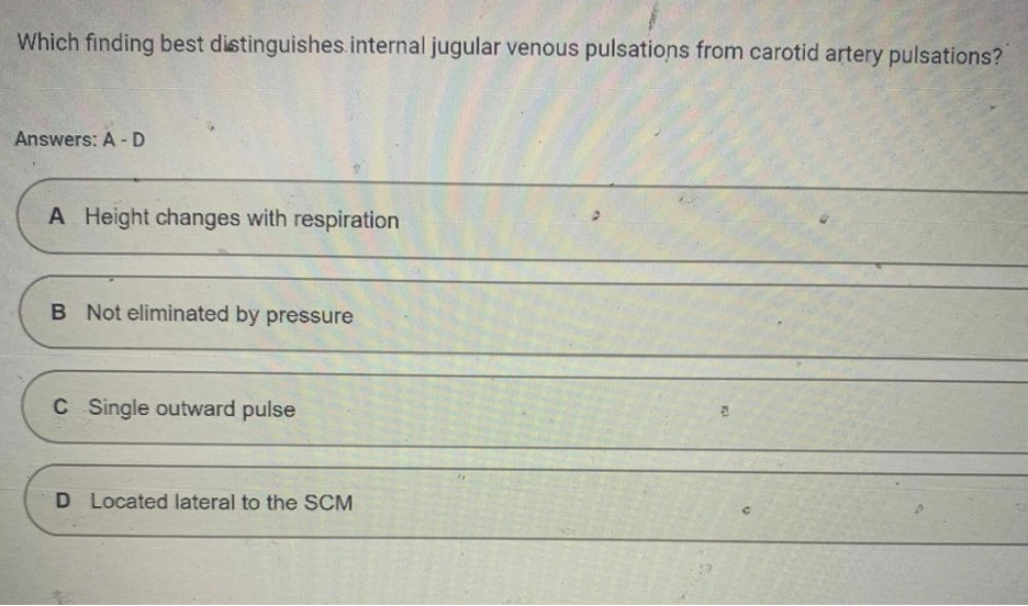JVP is 5 cm above the sternal angle with the head of the bed elevated to 50°. Carotid upstrokes are