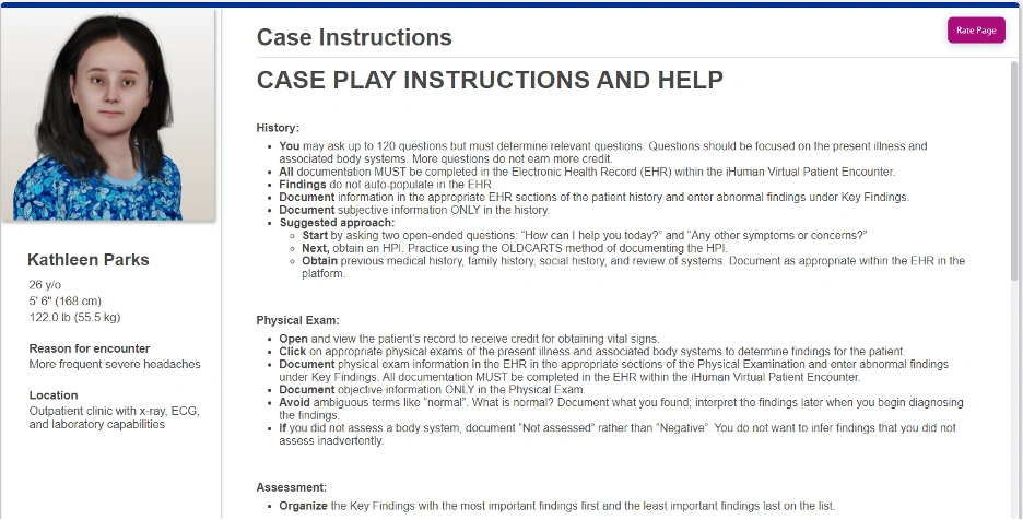 - All documentation MUST be completed in the Electronic Health Record (EHR) within the iHuman Virtual Patient Encounter.
